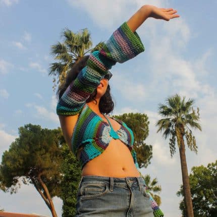 El yapımı, %100 pamuk iplikle örülen gün batımı çizgili tek omuzlu crop top, çok renkli “sunset” çizgileri ve asimetrik tek omuz kesimiyle modern bir silüet sunar. Hafif ve nefes alan örgü cildi serin tutarken esnek yapısı gün boyu konfor sağlar; festival, plaj ve şehir akşamlarına kolayca uyumlanır. Siparişe özel ölçü ile kişisel fit hazırlanır; sürdürülebilir, küçük ölçekli üretim anlayışıyla üretilir.