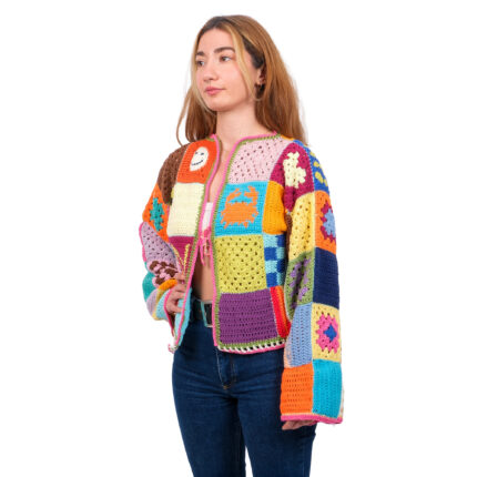 Granny Motif El Örgüsü Hırka – Uzun Kollu, Renkli ve Özgün